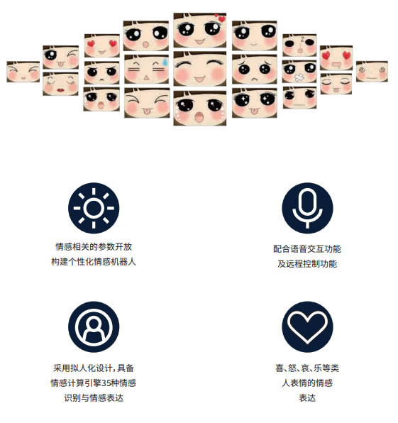 智能课堂机器人采用机器人视觉系统,深度语音交互系统、先进的语音引擎,搭载环形麦克风陈列、运用声控识别、语义理解、人脸识别