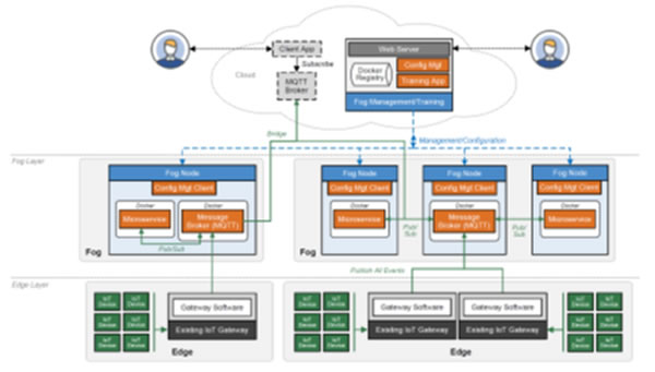 如前所述,集成人工智能和物联网的应用程序J大地受益于雾计算。人工智能是从程序上操作大数据来识别模式,并做出实时和时间敏感的决策。物联网包括所有在边缘收集、分发和处理数据的设备。雾节点内的计算能力允许人工智能所需的数据处理在更靠近边缘的地方执行,而不会遇到云的延迟。SmartFog强调人工智能以及人工智能和系统级微服务的管理,包括版本控制和配置。