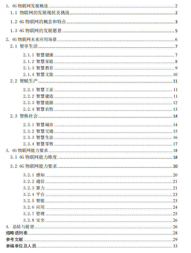 《白皮书》系统化的梳理了6G物联网在智享生活、智赋生产和智焕社会三大L域的未来应用场景,并提出在感知、通信、计算、平台、智能、应用、管理和安全等方面的能力需求。