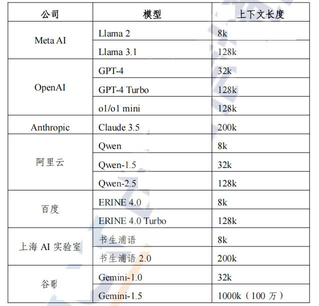 一是上下文窗口长度扩展,提升全局能力。大模型的上下文窗口长度是指 模型在执行文本生成任务时,能够处理的前置文本的数量或长度, 决定了模型对信息的理解深度和广度,对于理解和生成连贯、一致 且准确的文本具有重要意义。当前,国内外主流大语言模型均具备 128k 以上的上下文长度处理能力,可一次性处理数十万单词或汉字。