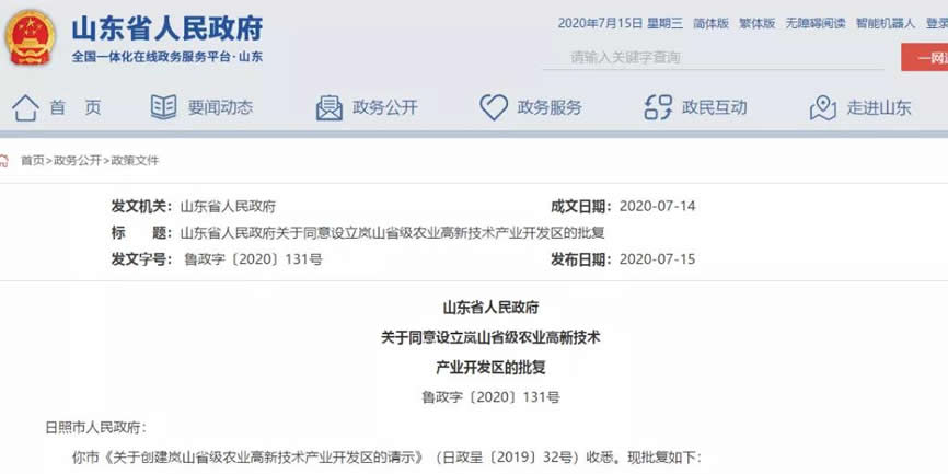 你市《关于创建岚山省级农业G新技术产业开发区的请示》(日政呈〔2019〕32号)收悉。现批复如下: