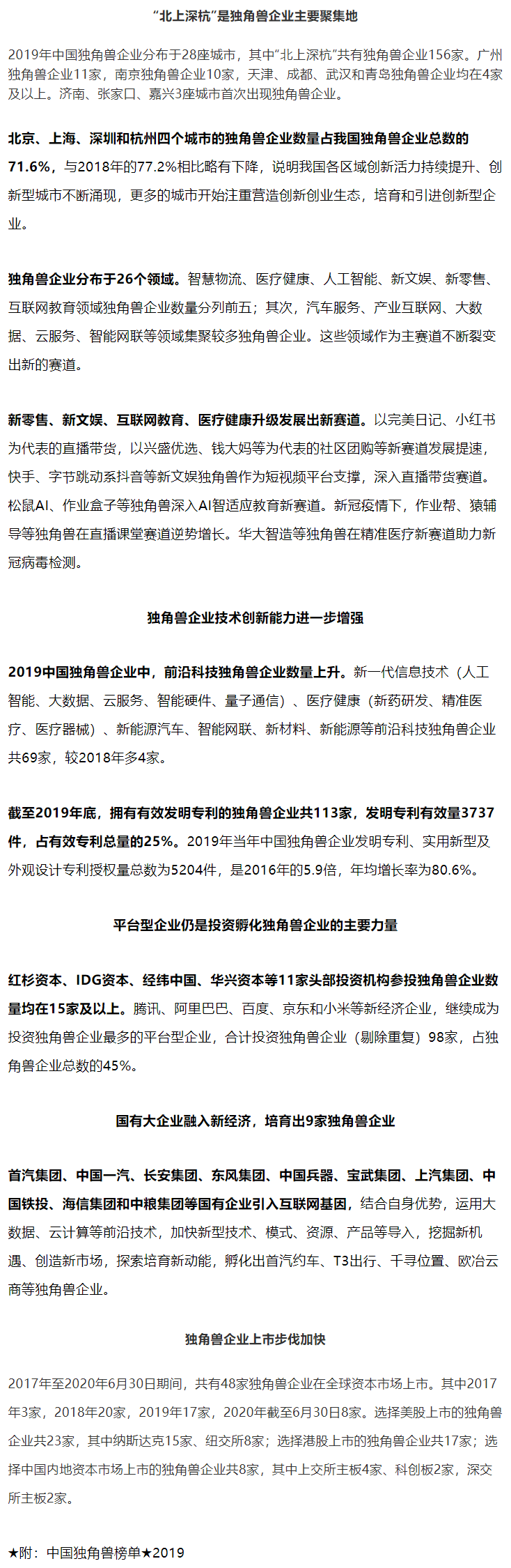 截至2020年6月30日,15家为2020年新晋独角兽企业。