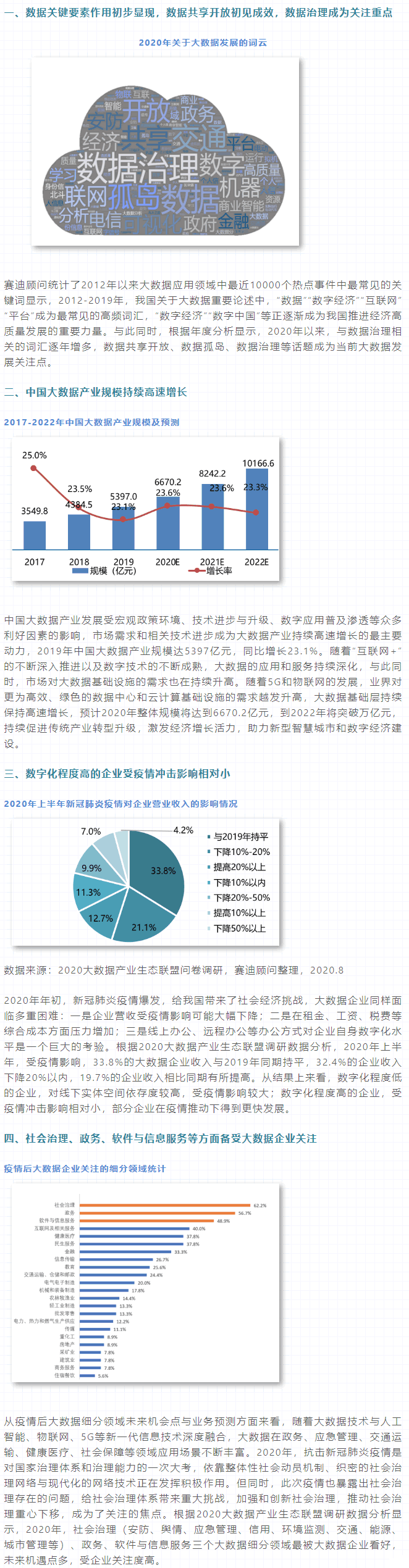 2020年,赛迪顾问联合大数据产业生态联盟,组织编写了《2020年中国大数据产业发展研究报告》(简称《报告》),并于8月26日在2020(第五届)大数据产业生态大会开幕论坛上正式对外发布。赛迪研究院副院长刘文强就《报告》主要内容做了发布。