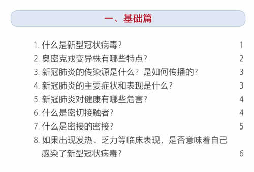 电子书涉及市民关心的100个问题,涵盖病毒知识、个人防护、疫苗接种、病毒检测、清洁消毒、食品安全、科学锻炼、心理调适、健康管理、出行防护、中医药防治、居家隔离医学观察等防疫要点,从新G病毒的基础知识到病毒检测的不同方法,从居家清洁的细节要点到预防消毒的注意事项,从日常起居的方方面面到调适身心的点点滴滴。