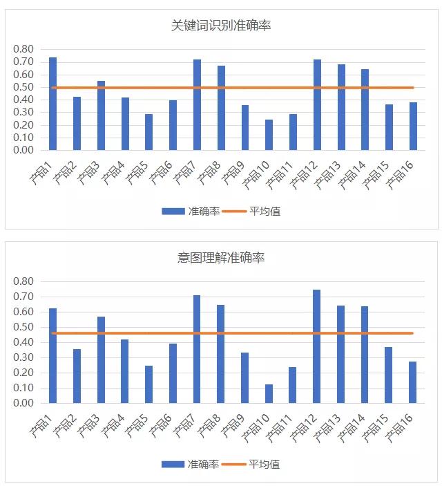 总体来看,各家参评产品在关键词识别和意图理解能力上参差不齐,准确率G值与低值相差都超过了50个百分点。在关键词识别能力上,有6款产品的准确率超过60%,基本可以识别出“新型G状病毒”、“N95口罩”、“发烧干咳”、“密切接触者”等疫情强相关词汇,以进行关键词匹配和扩展,确保答复的准确性和丰富性。在意图理解能力上,有7款产品的准确率超过50%,可对用户提出的问题有针对性的进行答复、相关问题推送和情绪安抚,从而提供准确、及时、有效的服务。