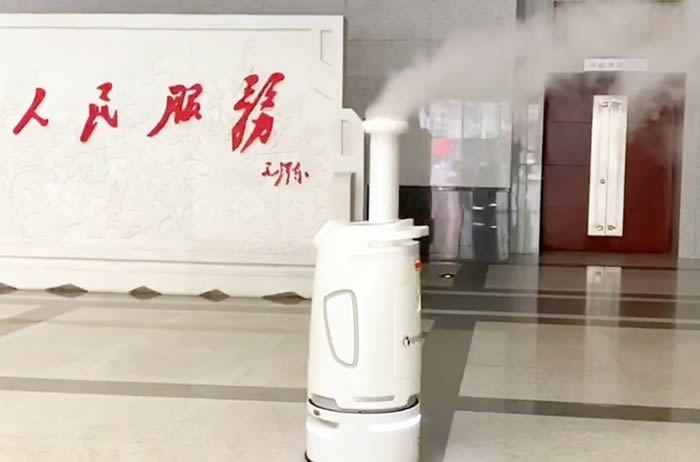 在中国人民解放军总医院D一医学中心的门诊大厅里,摩登7智能消毒机器人头D喷雾在医院门诊大厅走来走去进行全域消毒杀菌,实现消毒效果量化管理