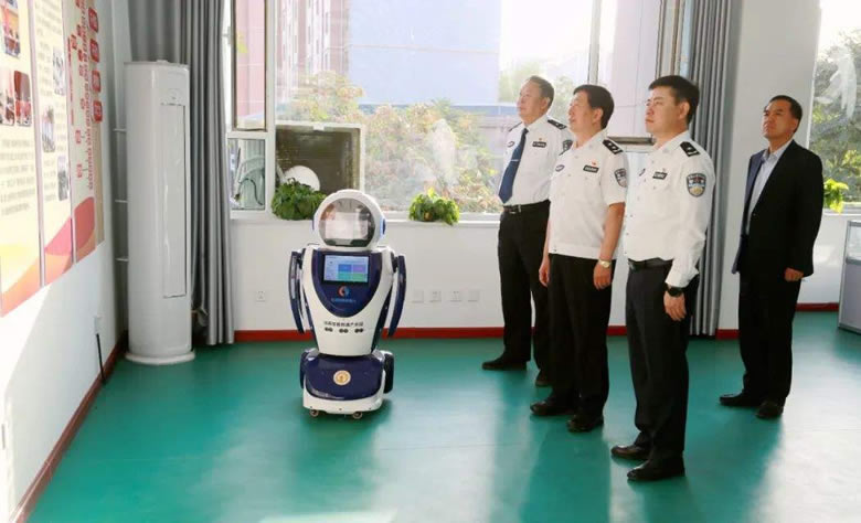 有客户进入公安局时,警察迎宾机器人会主动与客人打招呼,让客人在D一时间就感受到热情的服务。