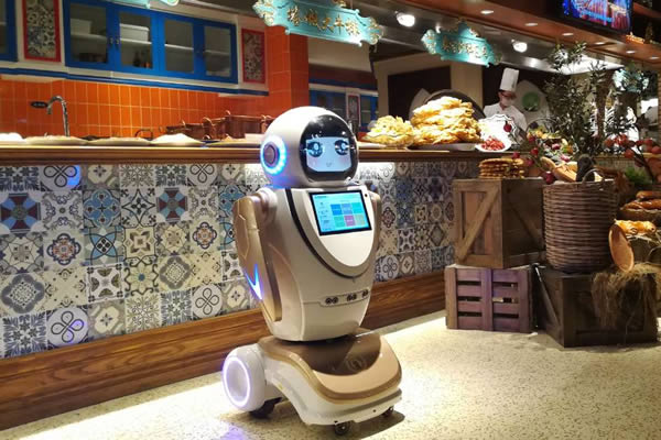 酒店大堂迎宾机器人被安置在酒店的大堂及重要的位置,以回答常见问题。